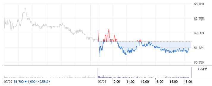 | 삼성전자 | 61,700 | +900 | +1.48% |